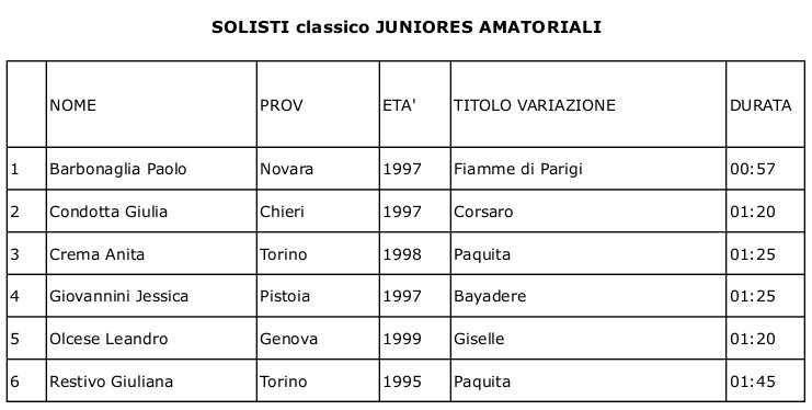 20 CONCORSO INTERNAZIONALE DI DANZA WEEK END IN PALCOSCENICO:Scaletta Solisti,Passi a Due,Gruppi Classico